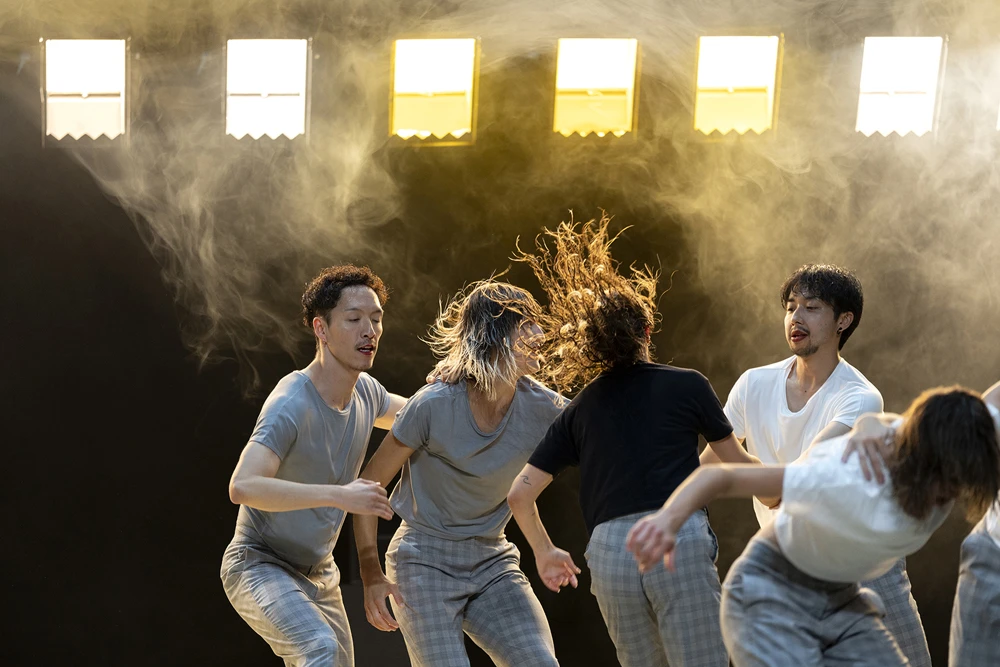 L’esperienza sensoriale che coinvolge lo spettatore si conclude quando gli interpreti si lasciano scivolare sul davanti del palcoscenico e spariscono tra le poltrone, nel buio del parterre, quali enormi insetti striscianti, generando un sentimento di stupore e inquietudine, fino a uscire di scena dalle porte di servizio laterali. Una sorta di addio al mondo precedente e alle incertezze, il desiderio di affrancarsi da una corazza, dal disorientamento o dal dolore: negli occhi dello spettatore restano lampi di ossa sporgenti, segmentazione, esoscheletri, fumo da sublimazione e una vibrazione potente.