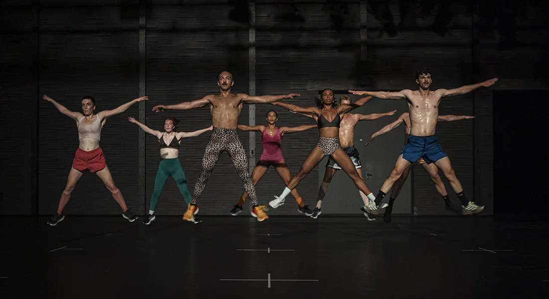 Ce à quoi l’on assiste est un défi visible, à la fois joyeux et exigeant : une chorégraphie tendue vers la perfection, aux bords de la résistance physique et mentale. Mais aussi l’acceptation de l’erreur, inévitable. Pour Martens, saisir la faille – la fissure, l’imperfection – renvoie à la quête d’authenticité de Philippe Halsman. Avec sa série Jump !, dans les années 1950, le photographe américain a immortalisé de nombreuses personnalités célèbres en plein saut. D’après lui, lorsqu’un sujet s’élance vers le haut, son masque social tombe et sa véritable personnalité émerge. Ce travail a révolutionné l’art du portrait, en rompant avec les conventions et en introduisant le mouvement spontané et l’expression brute des émotions dans l’œuvre artistique. Dans cette perspective, la réinterprétation de Martens – qui revisite sa pièce The Dog Days Are Over de 2014 – et l’usage du saut comme outil expressif démontrent que l’imperfection, l’extrême fatigue et l’épuisement peuvent devenir une expérience partagée, authentique, entre l’interprète et le spectateur.